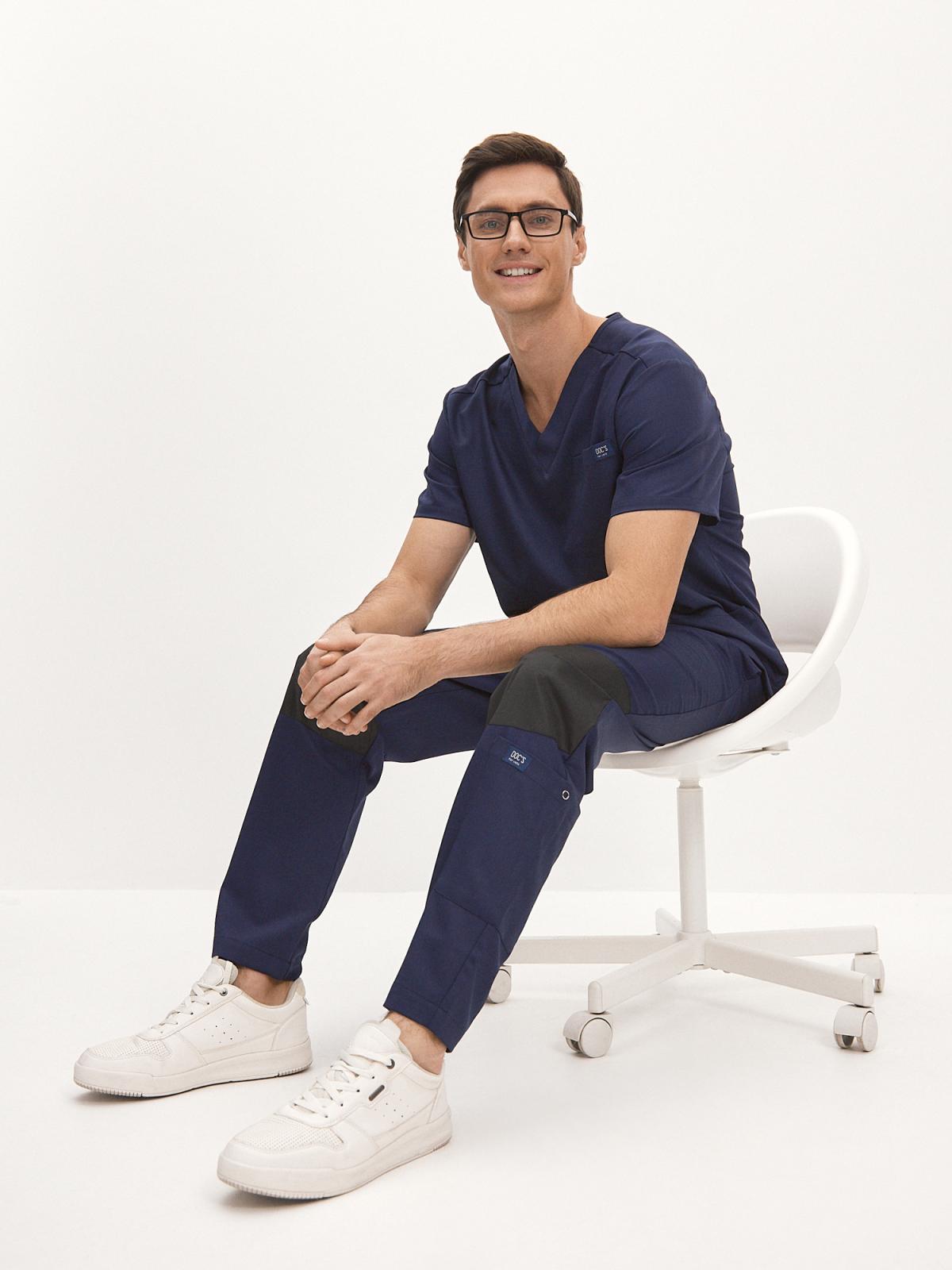 Очень комфортные мужские брюки из нашей ветеринарной коллекции. Мы выяснили, что для ветеринаров важны усиленные колени и "обычные" медицинские брюки никак не решают задачу - часто рвутся. МЫ поставили прочную и выносливую плащевую ткань в цвет основной ткани. Так же, мы учли пожелание низко расположенного кармана на голени, чтобы оттуда было удобно что-то достать. Удобный пояс с фиксированной резинкой, маломнущаяся и очень легкая в уходе ткань (отлично отстирывается, быстро сохнет) дополняет функциональность этих брюк. Ну, и как всегда, наша минималистичная медицинская эстетика. Этот коктейль не оставит равнодушным. Дополните костюм рубашкой из коллекции DOC'S for vets!